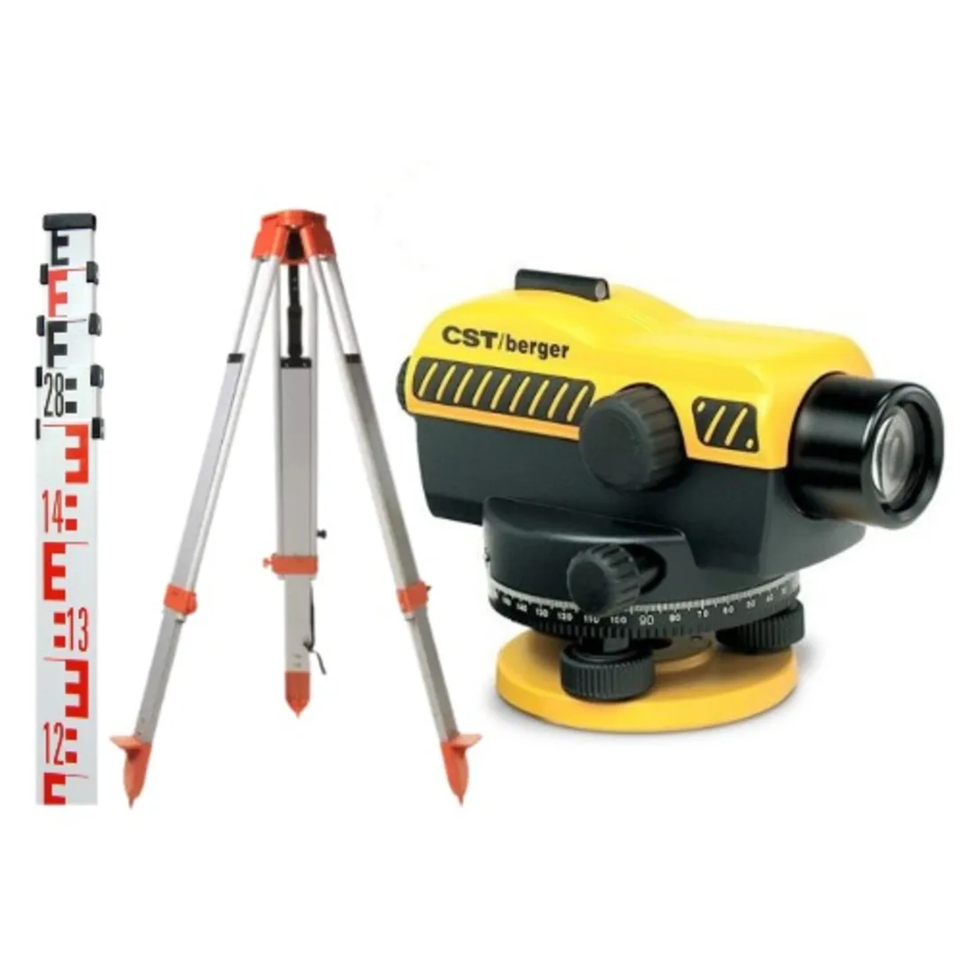 Brand new CST/Berger automatic level set with tripod and staff at best price in Nigeria for surveyor or engineer who demands accurate leveling anytime and anywhere. CST/Berger SAL32 automatic levels set up fast, are easy to use, and save time and money on every job. These automatic levels are designed for the contractor looking for exceptional value without cutting features or benefits desired in an automatic level. The SAL32 feature a magnetically dampened compensator for optimum range and accuracy. In addition, the SAL32 has a working range of 400 feet making it perfect for all general contracting leveling applications. The SAL32 auto level provide quick setup, easy sighting, and superior durability against vibration and shock, ensuring the increased productivity over an extra-long period of time. Horizontal angles can be read in 1°. Freely rotatable circle allows any angle reading from zero. Right angles can be quickly set for layout and alignment tasks.